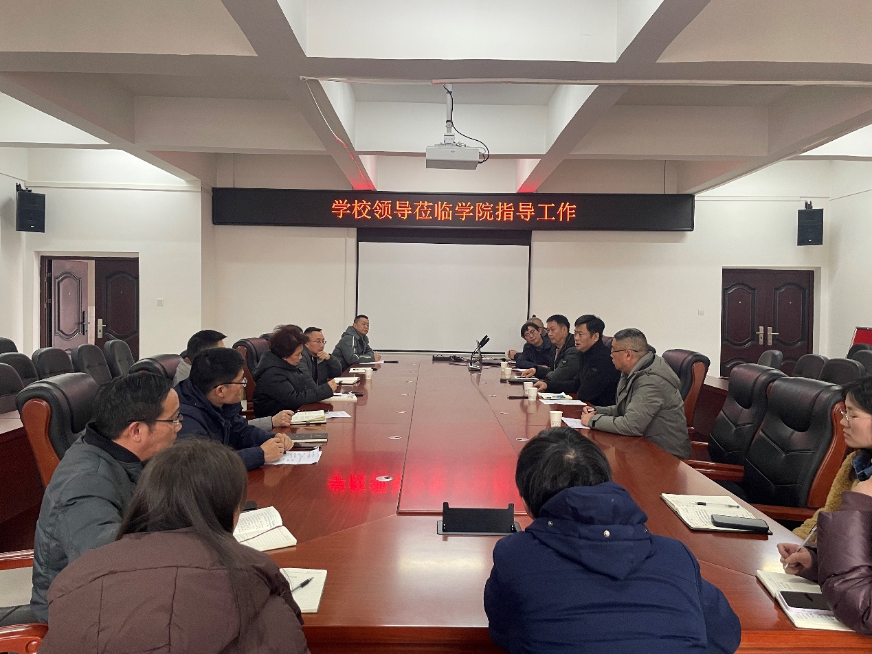 (学院通讯员 肖玉春)2025年2月24日上午,学校党委副书记王绯、校区办公室主任王晓彤、校区教学科研学生事务中心主任王文广、副主任谈宗凡、校区后勤与安全事务中心副主任胡斌一行到学院开展新学期教学工作检查,学院领导班子和中层干部参加了会议。