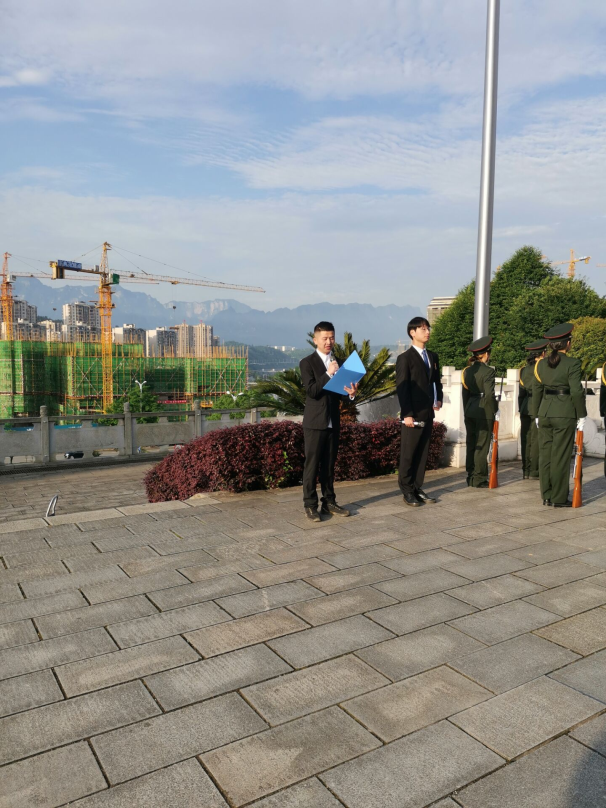 图为岳伟同志国旗下讲话
