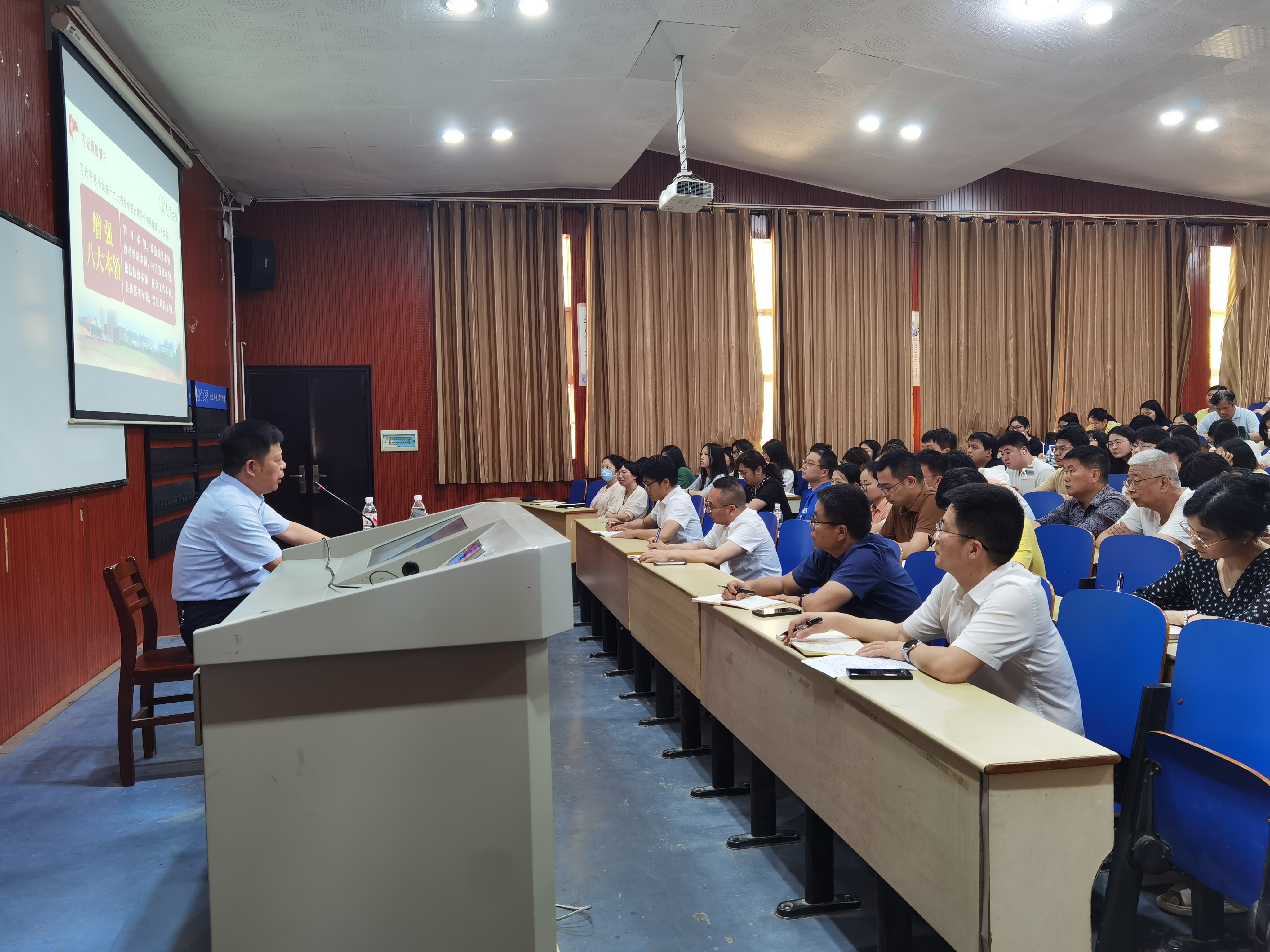 为深入贯彻中央八项规定精神学习教育要求,引导学院党员干部锲而不舍加强作风建设,以优良的作风促进师德师风和学风建设,推动学院各项工作高质量发展,5月20日,校党委委员、纪委书记刘启定以《严守纪律规矩 严守师德规范 做党和人民满意的好干部 好老师》为题,为学院全体师生党员讲授专题党课,院党委副书记、院长吴吉林主持。