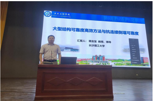(学院通讯员 梅馨月 彭思宇)2024年10月10日上午,应学院邀请,长沙理工大学土木工程学院副院长、博士生导师蒋友宝教授来校区做题为“大型结构可靠度高效方法与抗连续倒塌可靠度设计”的学术报告,报告会由学院卓德兵副院长主持。
