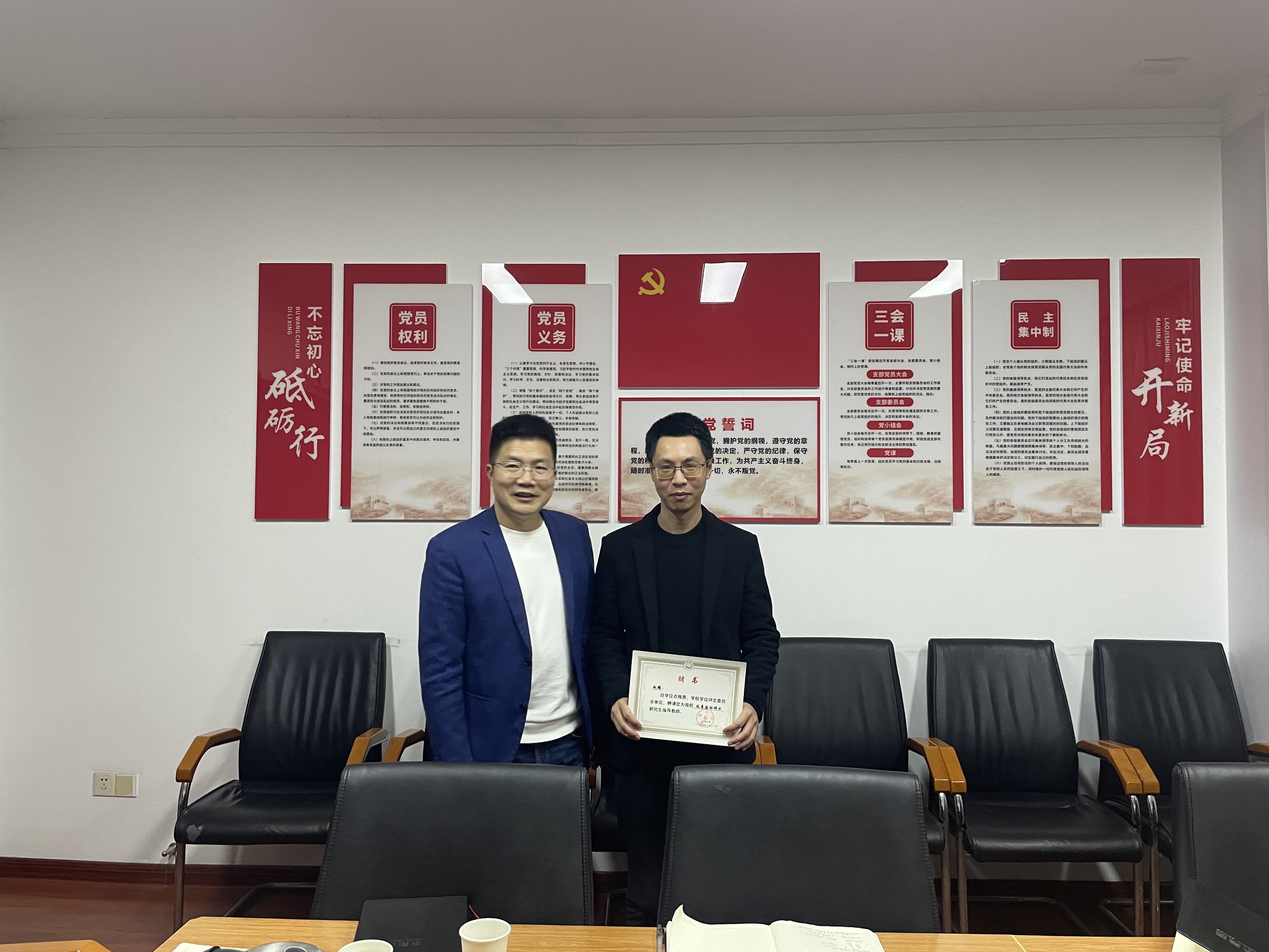 图为吴吉林院长为校外硕导颁发聘书