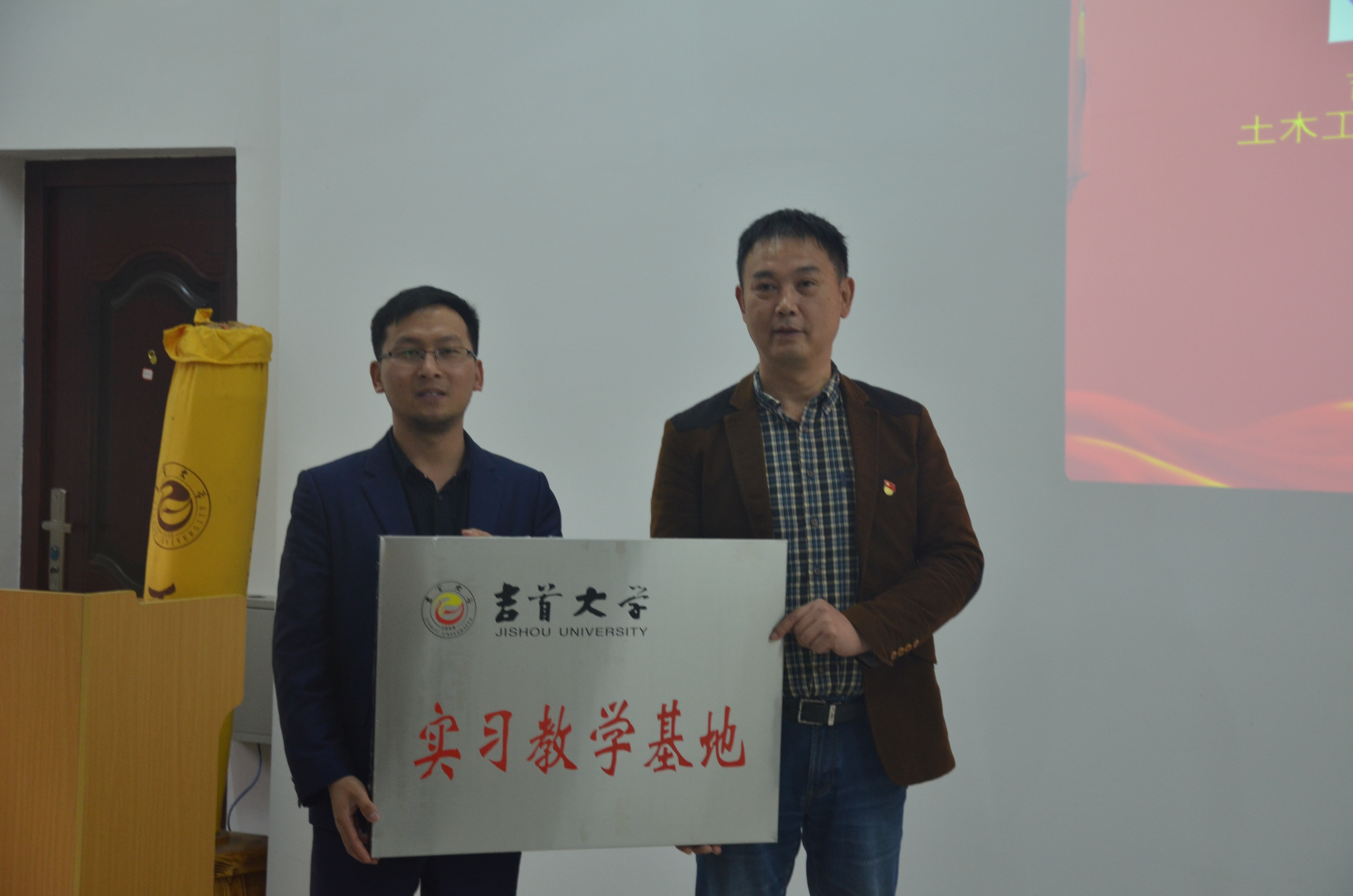 图为 学院王文广书记与柏慕联创总经理李世才签订合作协议 |