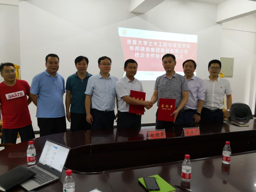 仪式由推动此次合作的主要联络人、学院党委副书记晏海清主持。在通报了前期工作情况后,院党委书记王文广与华邦集团人力资源总监胡传勇各自发表了热情洋溢的致辞,深切期望双方合作成功并结出丰硕的果实。随后副院长吴吉林代表学院介绍了的基本情况,与会代表还一道观看了华邦集团的专题宣传片。大家一致认为,双方都成长和服务于民族地区,有共同的出身和情结;华邦集团主要以高速路桥、大型房建、城市风景园林、环保工程和规划设计等为主要业务板块,与学院的专业和学科高度吻合,有共同的语言和平台;双方以人才培养和使用为纽带,实行强强联合,深度合作,做大做强,有共同的梦想和追求。校企成功合作将为新时期双方强化内涵建设,促进科学发展注入新的动能。会议要求协议签订后,双方要迅速建立合作促进机制,在充分发挥各自优势的基础上,加快共建“华邦班”、实践教学基地和就业创业基地等具体项目的推进实施,力求在人才培养、科学研究、社会服务、创新创业等领域实现互利互惠、互补互促、长期共赢的合作目标。