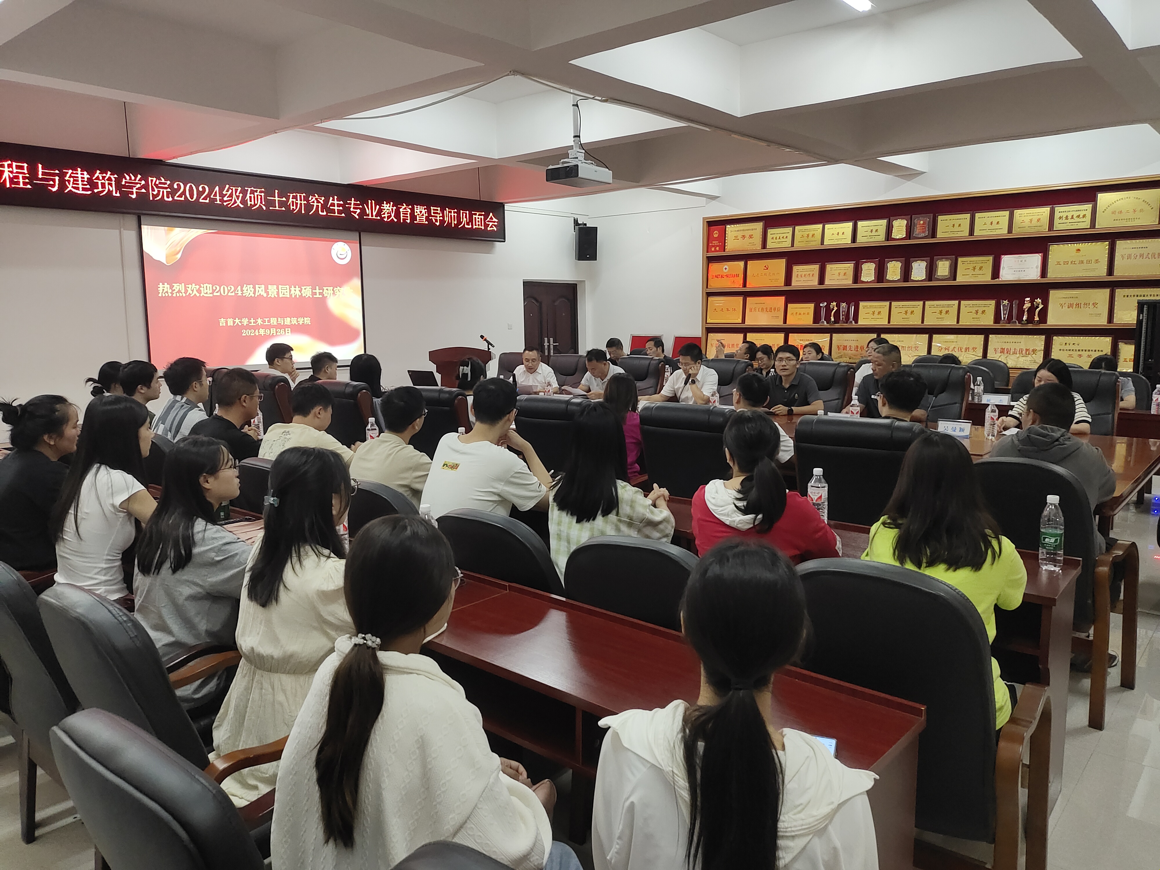 (通讯员 李先富)“十年寒窗过五关,一路欢歌抵澧畔;从此天门思年华,卧虎山顶梦无边”。9月26日晚,学院2024级硕士研究生专业教育暨导师见面会在学院六楼会议室举行。会议由副院长刘卫国主持,院长吴吉林、副书记田建林、副院长卓德兵、研究生导师、研究生秘书等教师以及全体2024级硕士研究生新生参加会议。